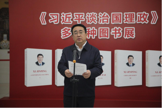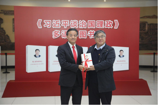10月21日,学校举行《习近平谈治国理政》多语种图书捐赠仪式。北京崇学文化发展有限公司负责人余富文一行来校,向学校捐赠了涵盖英、法、俄、阿、西、葡、德、日等多语种版本的《习近平谈治国理政》共148册。校党委书记宋迎东出席捐赠仪式,校党委副书记李荣生主持仪式。外国语学院党委书记吴越、院直党支部、区域国别与翻译研究中心党支部全体教职工、学生代表参加本次活动。
