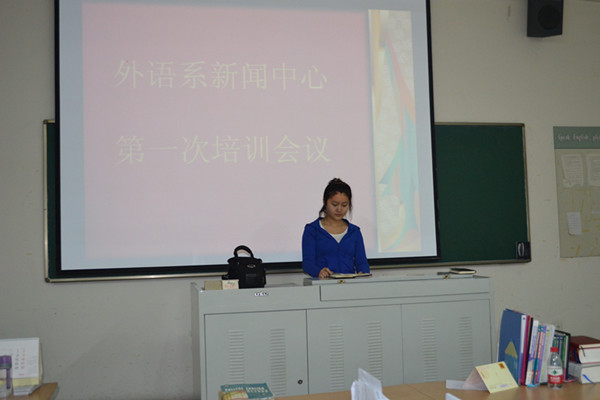 首先,姜孟简要介绍了新闻撰写的相关知识与技巧,并以几则优秀新闻为模板强调了新闻的客观性和时效性。接着,她对新闻中心上学期的工作进行了总结,在肯定成绩的同时,她也指出外语系的新闻宣传应更加注重人文魅力,工作人员的工作效率仍需进一步提高。