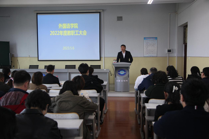 5月6日下午,外国语学院在41#422召开学院教职工大会。会议由学院党委书记吴越主持,学院领导班子、全体教职工参加大会。