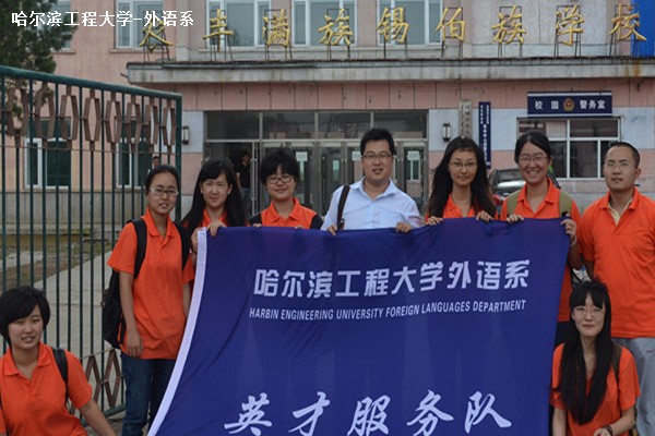 7月20日,哈尔滨工程大学外语系辅导员由春桥带领9位团委学生会主要干部来到双城市农丰镇满族锡伯族小学进行调研及支教活动。出发时,天气并不十分晴朗,伴有淅淅沥沥的小雨。但由导一行10人不顾风雨的阻拦,乘坐公交汽车来到客运站,又坐了两个小时的客车后才抵达目的地。